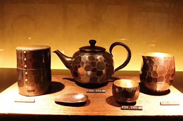 玉川堂独创的铜着色技术也很有意思,在铜器的表面烙上锡,再将烙印上锡的铜器浸入硫化钾等液体中,这样铜器表面就能浮现多种多样的色彩。色彩流畅的宣德色、孤高严肃的紫金色、优雅华丽的复合金、单纯朴素的素铜色以及低调而不失华丽的银色,这些都是是玉川堂百年研发出的标志性色彩。