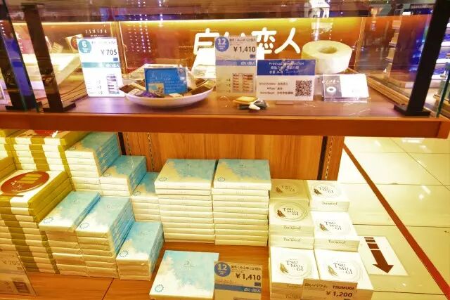 出国一趟总想给亲朋好友带点纪念品回去,而日本的点心类可谓非常适合的。在中国有着超高人气的ROYCE生巧、白色恋人、东京香蕉等都放置在入口显眼的柜台,方便顾客拿取。