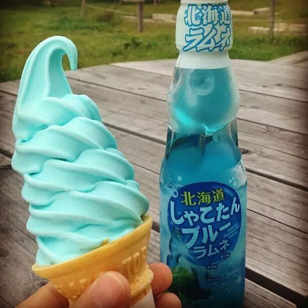 在积丹半岛的神威岬的休息屋「カムイ番屋」里面向观光客贩售着当地特产和各种食物,在其中一角有着只有在此处才能尝到的冰淇淋——「しゃこたんブルーソフト」。非常漂亮的蓝色冰淇淋,是以在积丹半岛能常见到的“海之蓝”为原型做出的薄荷味冰淇淋。还有许多其他与“海之蓝”相关的产品,不要错过哦。