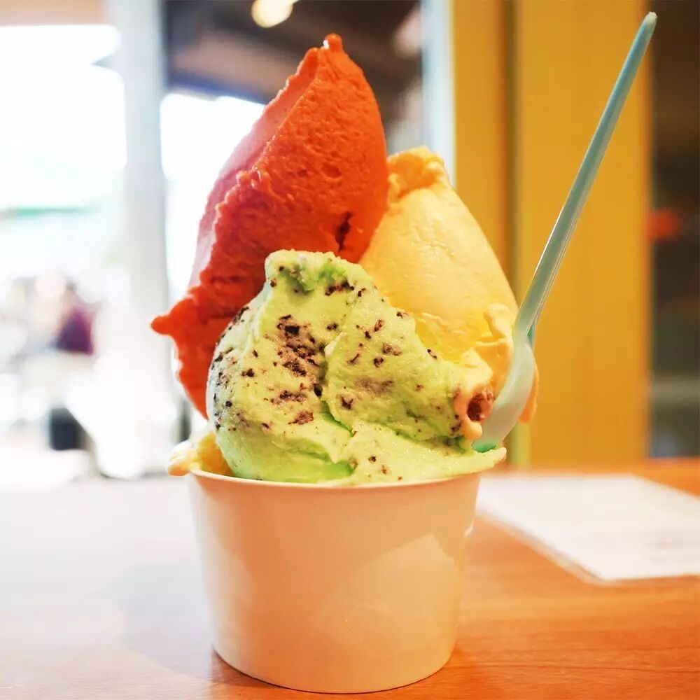 拥有自家牧场,每天都有最新鲜的牛奶用来制作冰淇淋。不使用任何香料和防腐剂,尽量减少加入添加剂来保持最天然健康的味道,适中的甜度。最推荐的当然是原味,以及“紫苏沙冰配白冰淇淋”了。