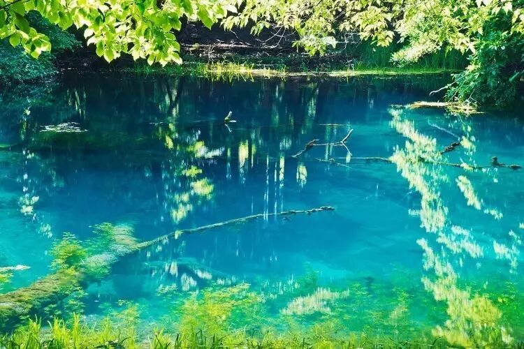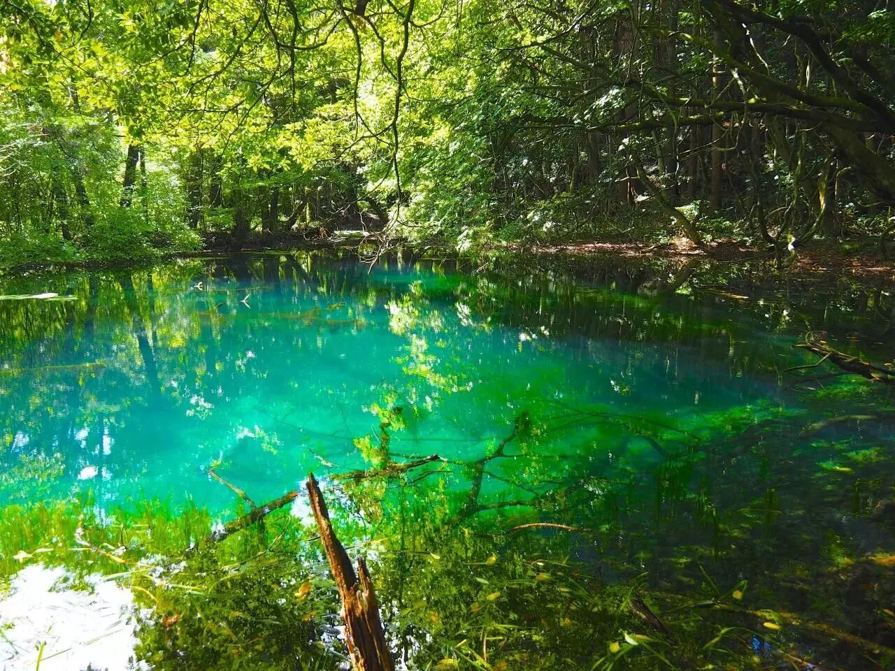 丸池仙是山形县唯一的,由鸟海山涌水形成的池塘,由于水质清澈透明,所以能看见池底汩汩涌出的山泉。枯朽倒塌的树木横卧池底,潺潺流动的池底涌泉环绕其间,犹如蛟龙盘踞一般,更有神秘幻境般的感觉。