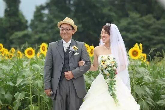 在7月最后一个星期日,会举办每年的固定活动——向日葵婚礼。黄灿灿的向日葵花海与白色的婚纱互相辉映,和在场的所有游客一起,祝福这些新人们吧。想要感受这别具一格的幸福场景,那就请7月最后一个星期日来观花海吧。