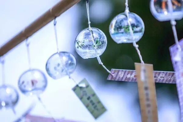 在没有空调的过去,日本人便听着风铃声度过潮湿闷热的夏季。风铃是不可或缺的纳凉好物,风铃声能让人静心也是有科学依据的。