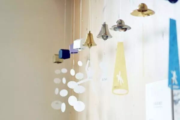 跟玻璃清脆的声音相比,黄铜风铃的声音稍显深沉,并且因为是职人手工制作,也是每一只声音都不同。除了不同形状,还有不同的颜色、表面质感和不同的短册可以选择,售价不等。