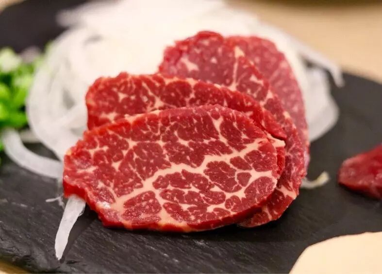 生食马肉是熊本特有的文化,据说熊本城的旧时贵族原就吃马肉,在二战之后因粮食短缺,服完军役的马匹就成了牛肉、猪肉的替代品。马肉富含胶原蛋白,是低卡路里、低脂肪率的极好的红肉。