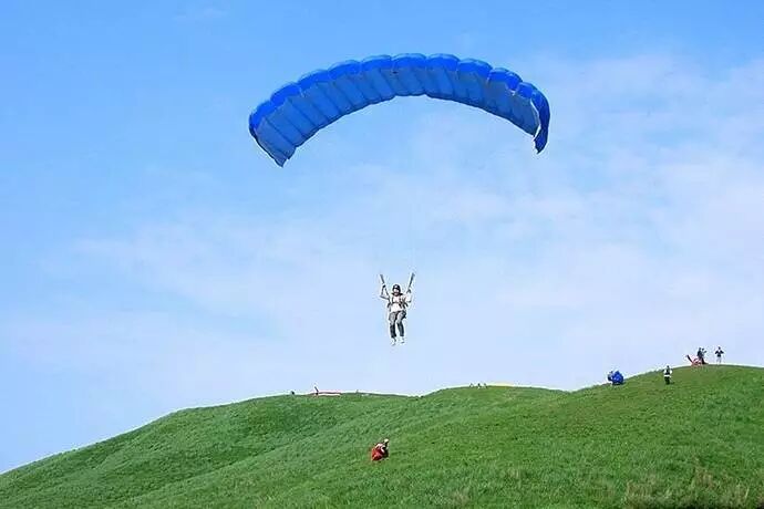 最有人气的是滑翔伞运动,能在飞翔时俯瞰到景色优美的绿色草地。沿着小山丘向下跑,不知不觉中已经腾空而起,包括练习时间在内,这种单独飞行最少只要半天时间就能体验。如果您一个人感到不放心、觉得时间不够,也可以选择和教练一起搭乘的体验项目。