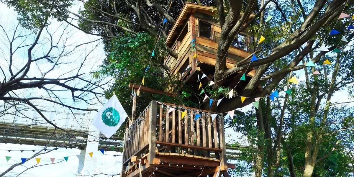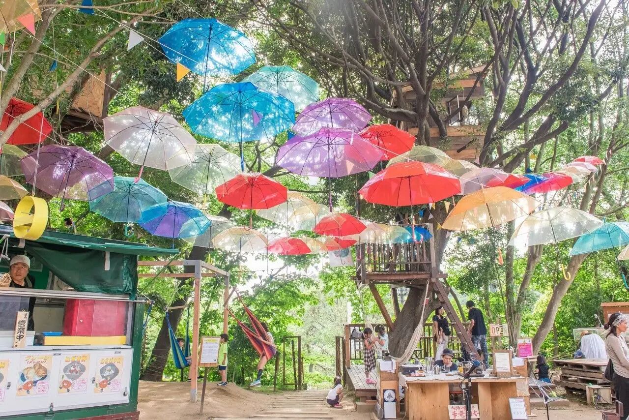 树屋可以说是很多人儿时的理想了,千叶县就有这么一家人气树屋。被彩旗、雨伞和森林围绕的树屋,累了还可以来杯咖啡休息一下,如同故事中的场景,怎么能不吸引人驻足呢?