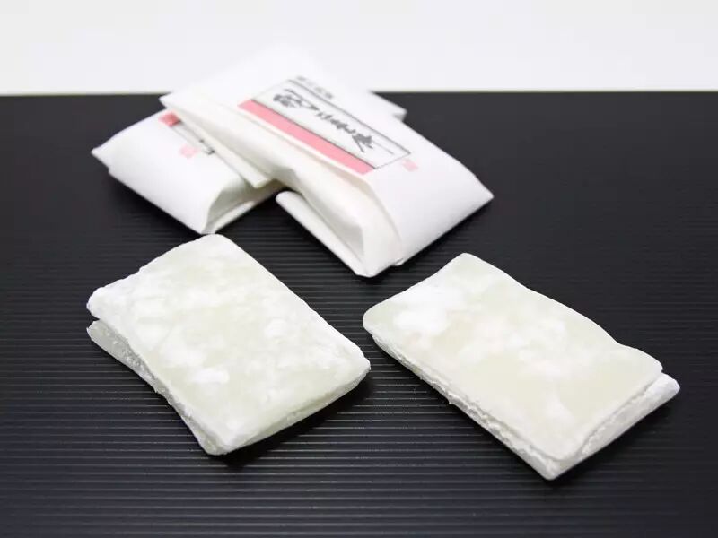信玄饼是用糯米粉做成软年糕后沾上黄豆粉吃的,而且其中不含任何添加剂,从昭和时代至今一直保持着纯朴的口味。