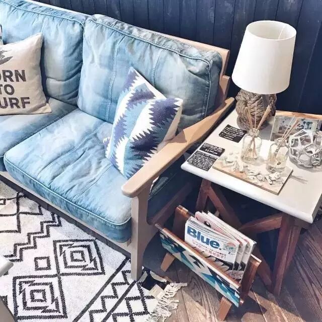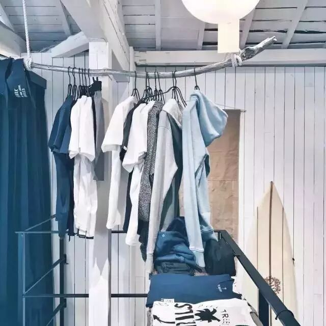 黑白色调的木板装饰好像在一间海边小屋一样,连抱枕地毯的设计都有浓郁的南洋味道。二楼还有一些适合度假穿的休闲服装以及家具地毯之类的,也是度假感满满。