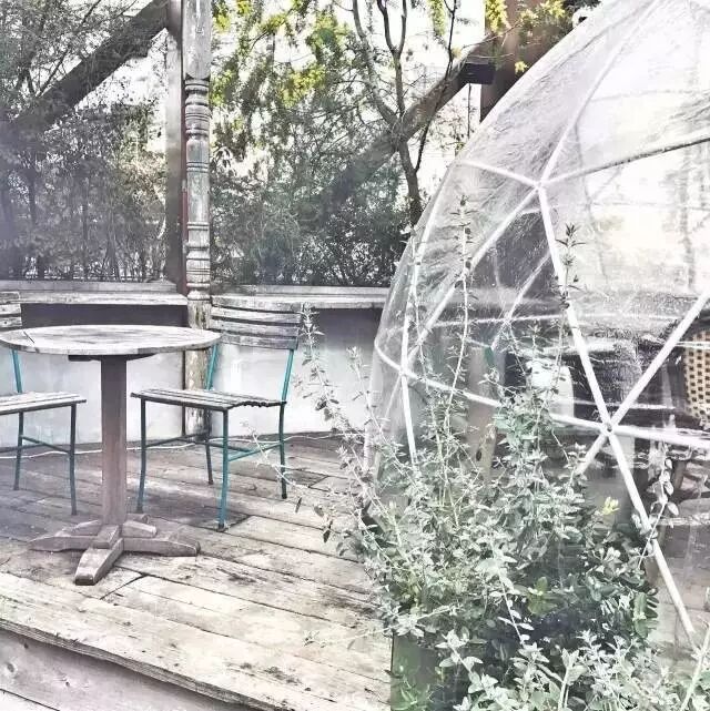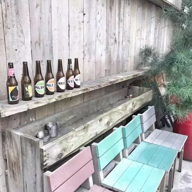 装潢以涂上明朗色彩的木头为主,啤酒瓶都是随性的装饰,梦幻的花草丛中还有个透明的“温室房间”。想在这里做下“光合作用”,可是要先到先得的哦。