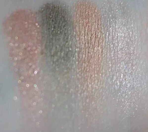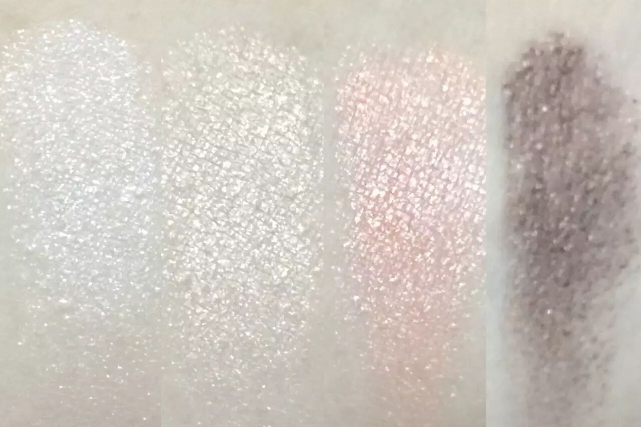 这一盘依旧是细腻的细闪,光泽感很强,超级好看的,配色比前面那两盘更清淡了一些,更适合喜欢淡妆的小仙女。粉质很软糯,略飞粉,好晕染,不愧是开架中的战斗机!有博主说这一盘的配色和SUQQU的光橙花很像,的确挺像的,但是SUQQU的底色更浓郁一些,这一盘更清淡一些也更适合新手一些。