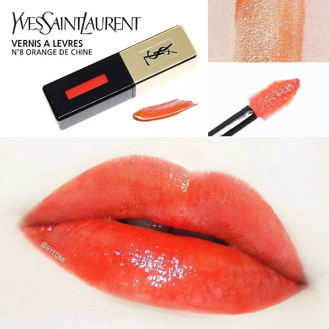 这一只唇釉在之前的春夏唇色推送已经推荐过啦,在这篇橘色合集再推荐大家一次~这一只唇釉就是一个大橙子,而且是最饱满的那种橙子,超级好看的!镜面唇釉的玻璃唇效果加上饱满的橘色,配上唇釉中带了点细闪,别提多美了好吗!ysl的镜面唇釉是有一点点拔干的,用久了会有一些唇部脱皮的情况,用之前要好好做唇部打底~