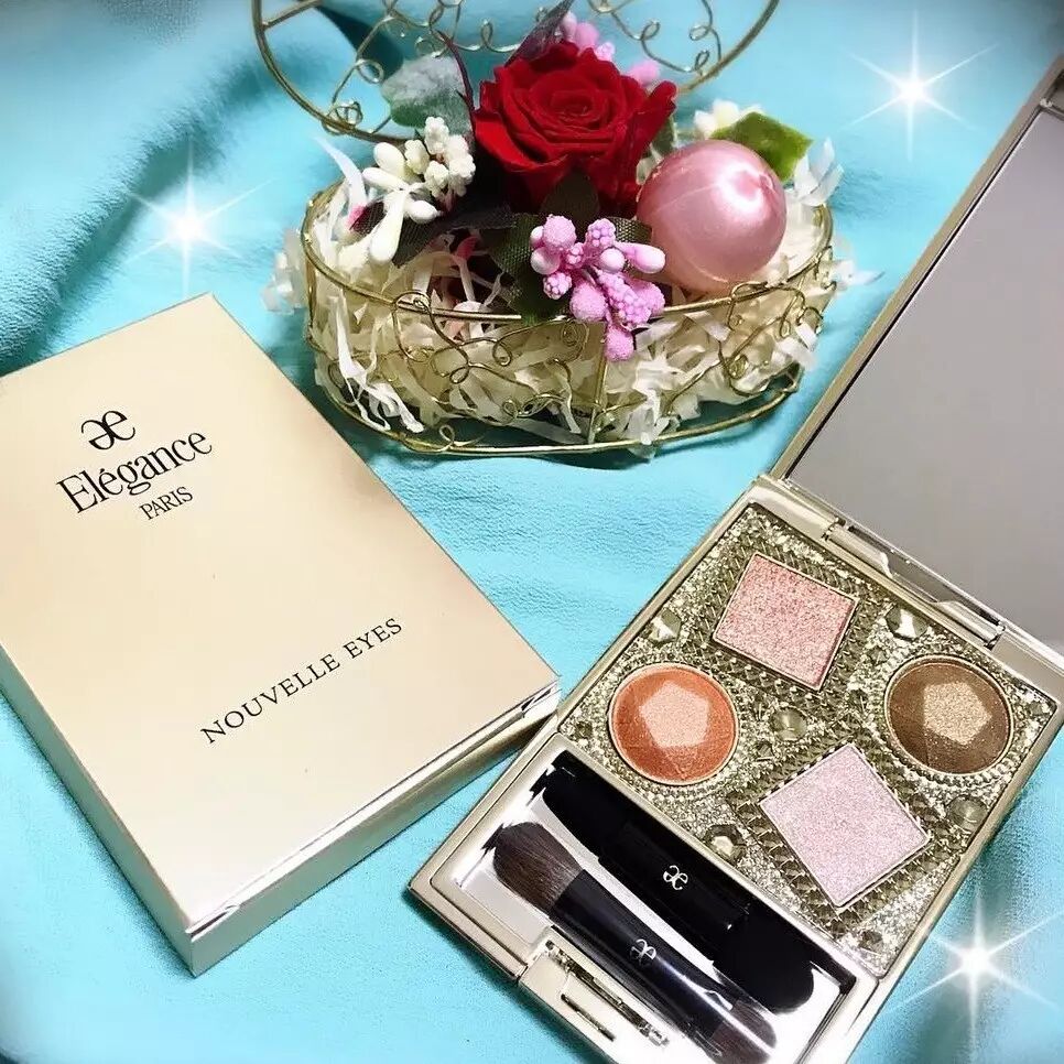 elegance的包装一向都是华丽有质感的金色,眼影块的形状被打造成如宝石般的切面,颜值实在是很高。粉质如它们家的一贯品质,细腻好晕染,显色度比较一般,好上手,同样也是日系标准的细闪。