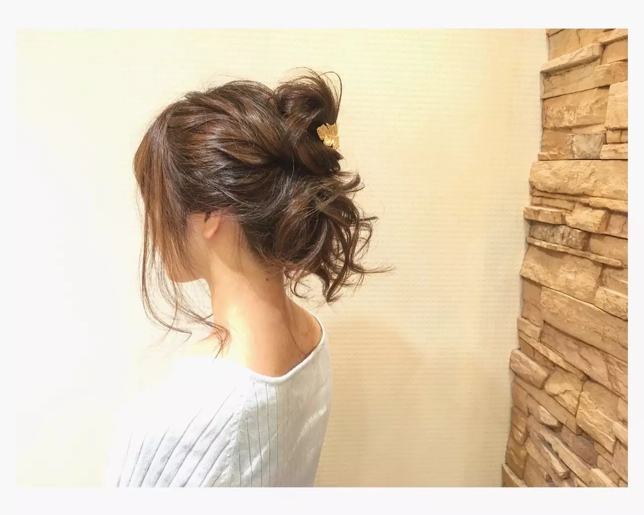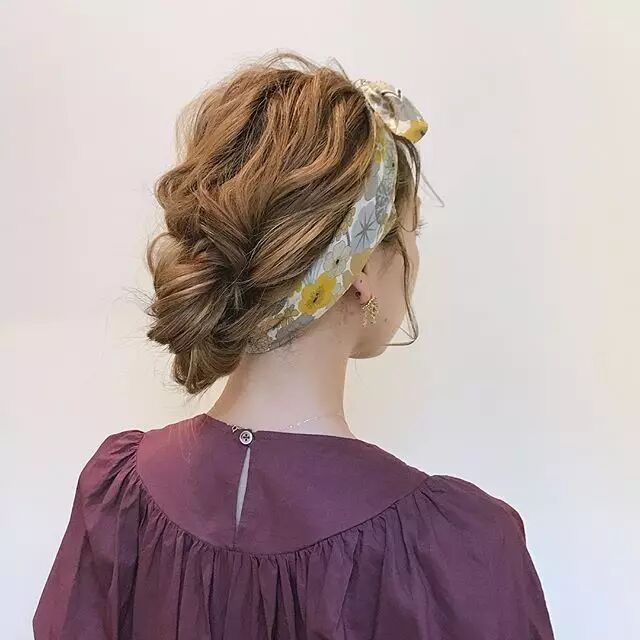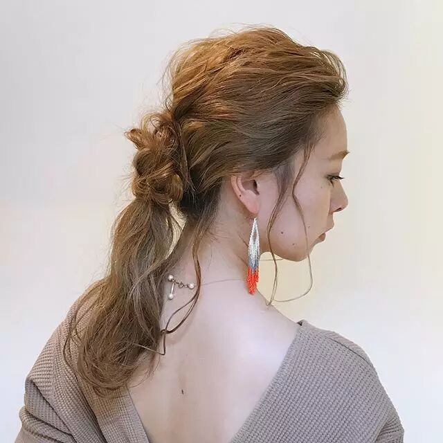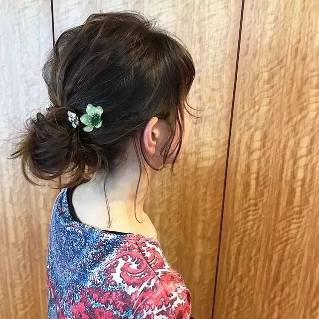 ▼也可以一半梳成团子,另一半散下来