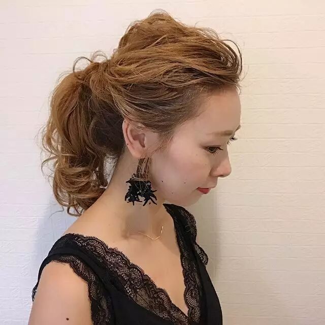 ▼有点凌乱感的高马尾,跟礼服也很搭