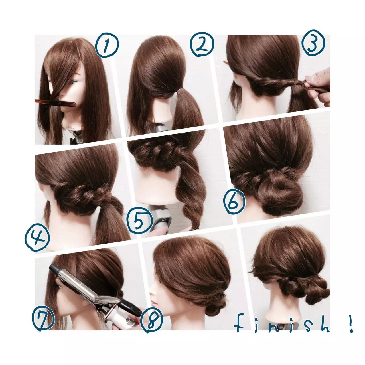 然后或编、或盘、或束,做成喜欢的发型