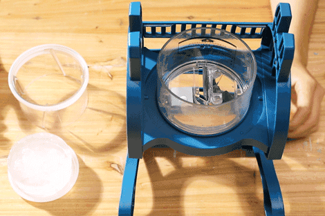 轻轻下拉侧旋钮,就开始刨冰啦!松手就会停止,超智能。