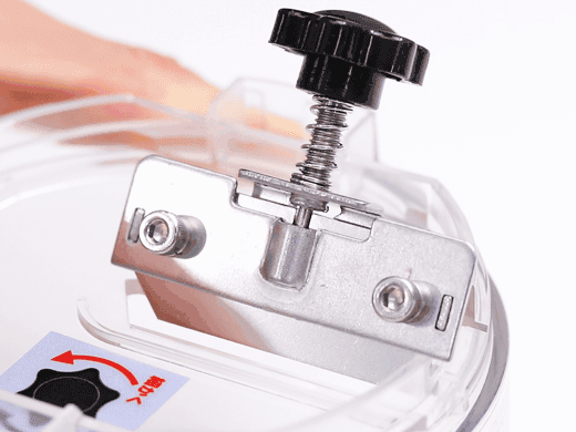 旋转外盒上的黑色旋钮可调节刀片高度,刀片升高出冰变粗,刀片降低出冰变细。
