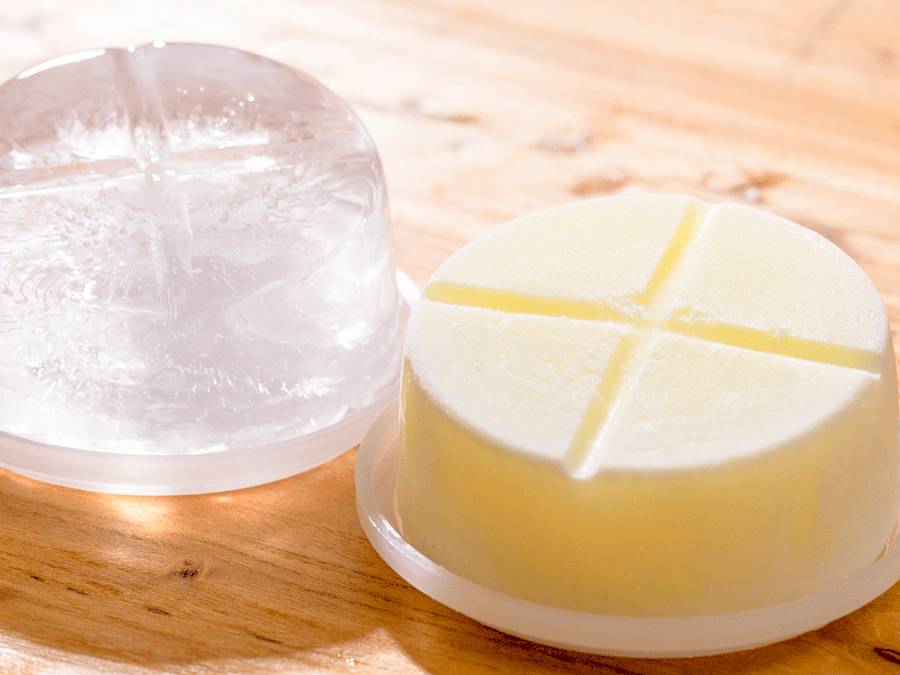 现在就可以放入冻好的冰块了,还记得冰块上的十字纹吗,最好将十字纹朝上,有利于冰爪抓冰。