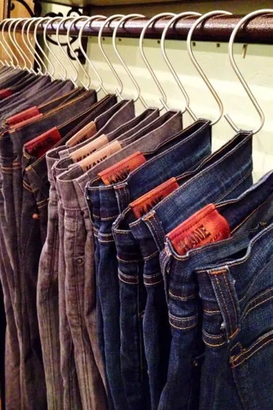 衣柜中,叠放的衣服很占地儿,去超市买一些弯弯的挂钩,巧妙的把裤子都挂起来,会惊喜的发现,挂上几十条裤子都不成问题哦!