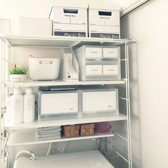 洗衣机以上的空间不要再浪费啦,不如安一个金属储物架吧,上面可摆放各种浴室杂物,是不是很省空间?