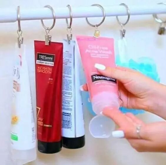 一个几毛钱的窗帘扣也能在浴室发挥大作用,可以容下百种化妆品,不妨试试看!