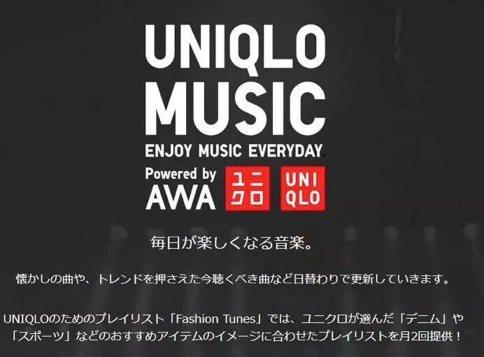 8 月 1 日起,优衣库与音乐流媒体AWA合作,在日本的官方 APP 上线了一项新内容—— UNIQLO MUSIC。用户可以在app上收听到每日歌曲推荐、本土或国际热歌排行榜,还有个专门的优衣库产品音乐频道“fashion tunes”。