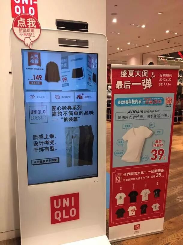今年7月,优衣库在北京、上海、广东、天津、福建等多个省市的100家门店推出了一个叫“智能买手”的电子屏。