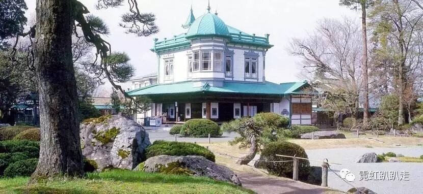 盛美园是在江户时期由日本建筑世家清藤家设计建造的,位于青森县平川市,是一座私家花园,据说这种被称为和洋折衷式的住房在明治维新以后非常盛行。从庭院内部远看这幢建筑与动画里的场景几乎一模一样。