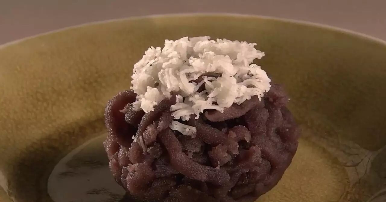 以红豆为原料来制作的和果子「初雪」。