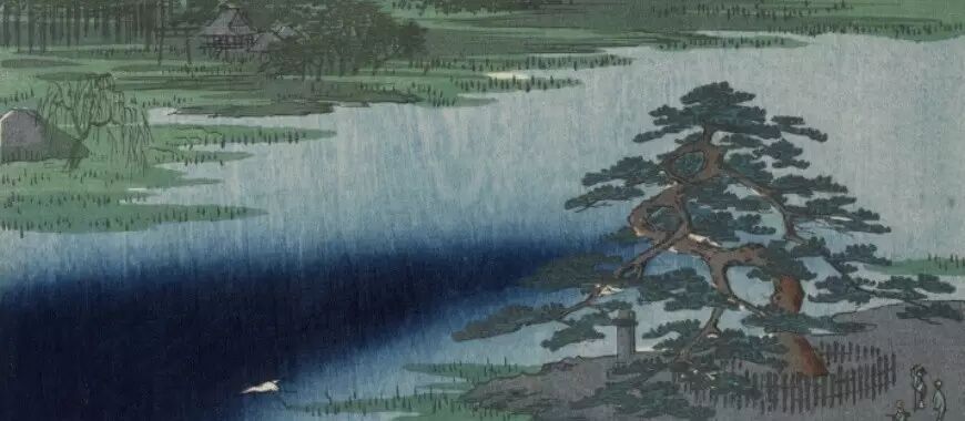日本浮世绘画师歌川广重的作品「名所雪月花・井の头の池 弁财天の社雪の景」,就是在描绘井之头恩赐公园中的弁财天堂