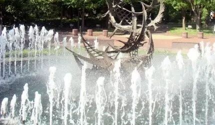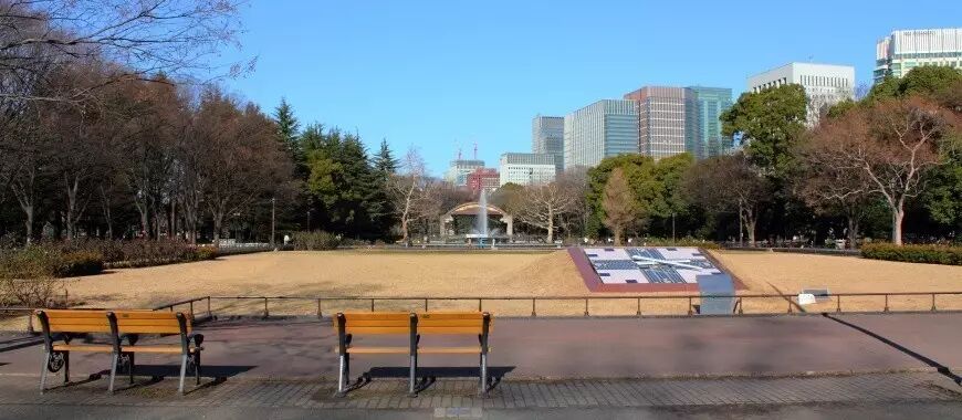 日比谷公园自1903年开园,超过110年。原本这个地方打算建立官厅,但由于土质不稳定,最后被划定为公园,负责设计的团队成员以德国留学的人为主,因此构成添加了许多德式庭园的元素,园内亦留下了「心字池」与石垣,保留和风情调,它也成为了日本第一座加入欧洲意象的「洋风近代式公园」,1923年,野外大音乐堂完工,日比谷公园也因此比别的公园多了些悦耳的音乐表演机会。座落在都心,日比谷公园的喷水广场在每天上午8时至晚间21时,在花团锦簇以及高楼围绕的环境下,上演一次又一次轻巧而富有玩心的喷水秀,也是日比谷公园代表性景观之一。在这里,透过相机可捕捉到看着喷水秀兴高采烈的可爱孩子们、以及明明是上班时间却又偷跑来小憩一阵子上班族,可说是人物抓拍的拍照天堂。