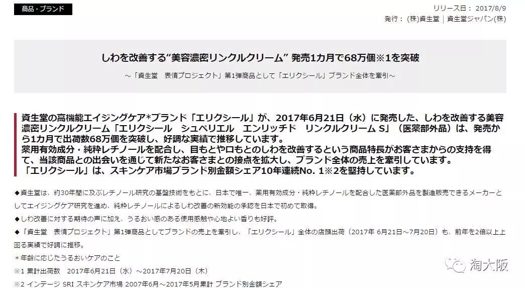 资生堂于17年6月21日推出 新款局部祛皱ELIXIR enriched wrinkle cream S 能够有效改善眼部、唇周皱纹,并获得了日本相关政府部门认可!这是继POLA 之后,第二款获得日本官方认证的抗皱护肤品价格只有pola去皱的一半!