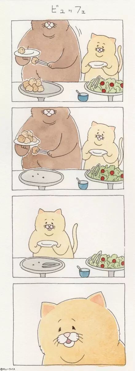 除了橘猫,Qrais笔下还有其他的动物形象: