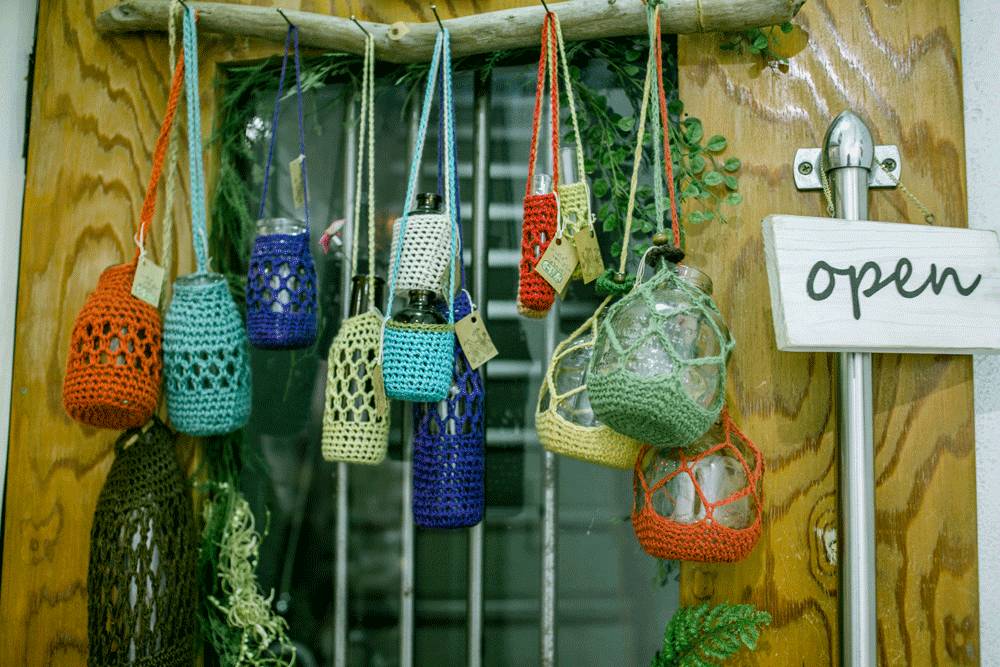 而作为手作达人的店主,主攻的则是织物。店里随处可见织物,包包、线球,都是店主的作品。柜台前垂着若干彩球,“这些被客人买来当做家猫的玩具。”好像每一个爱逛杂货店的手作人都该有只猫才对,店主想了想,“我家倒没有猫,以前养过小狗。”