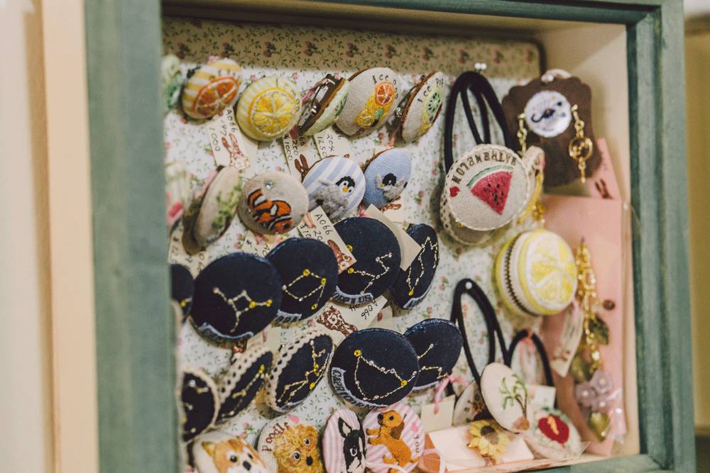 除了各类可爱小物,还能发现相框下方写着作者的名字——这是作者们在店里的独属展示空间。作者里,有2012年开店时便与店主合作的手作人。虽然相框租赁以月为单位,但不少作者与店里交往都很长久,一旦入驻,便长久留下来。其中也有外国籍作者。