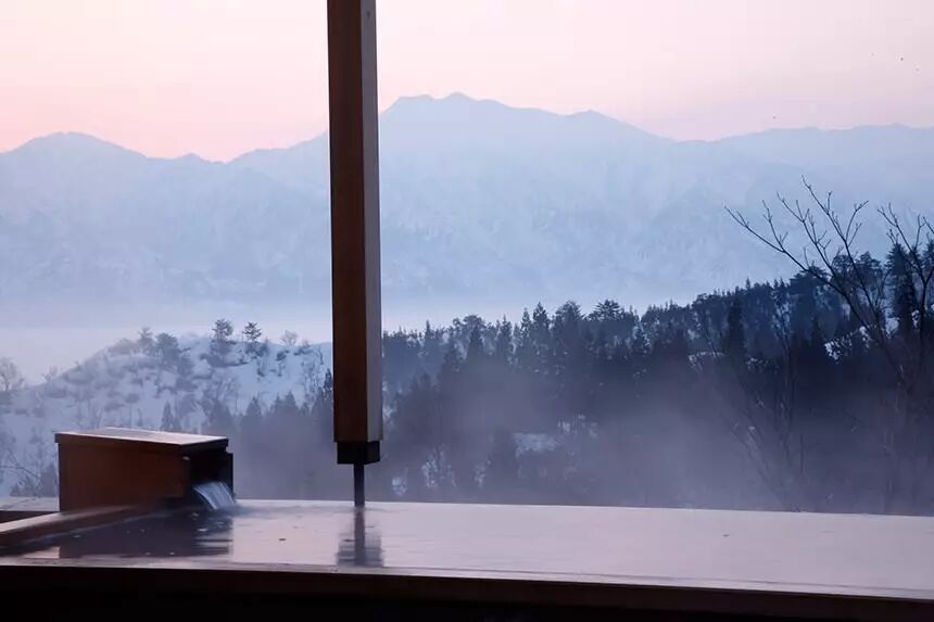 每到冬季,山上被白雪覆盖,寒意笼罩。泡着温泉的身体,却温暖适意。两厢遥望,凛冽清新。