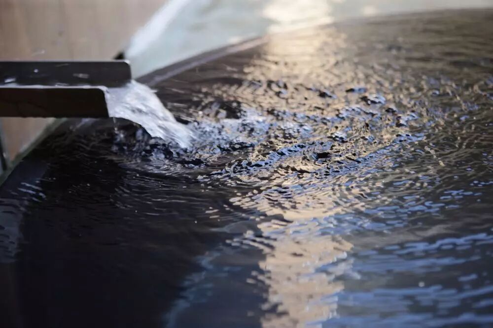 “许多露天温泉,你得站起身来才能看得到风景。里山十帖特别测量浴池的方位与高度,让人一坐下,不必费力,平视出去就是最佳山景。”设计师岩佐也木如此说道。
