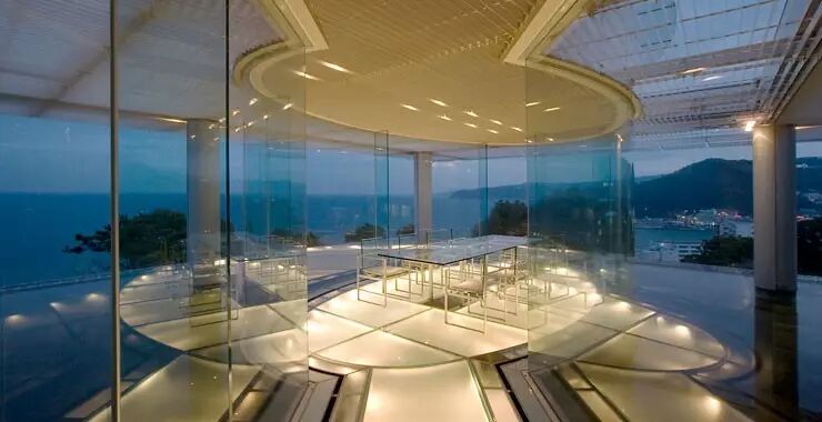 ATAMI以全透明的玻璃为主要特色,在日式的朴素质感中,体现出以隈研吾的设计技法:让水在建筑周边循环,结合热海周围的自然地形,清晨、午间、傍晚、入夜,时时都呈现非凡景致。