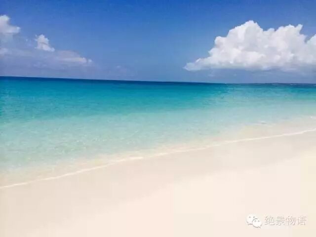 三色大海映照着纯白色细软的沙滩在阳光下闪闪发光,走上去柔软至极,让人宛如走进天堂般。