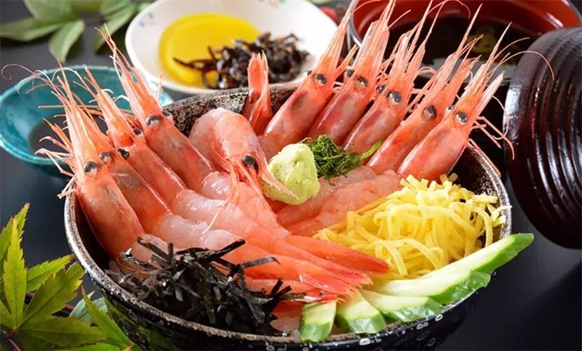 甜虾虽然在日本海分布较广,但尤以福井县所捕捞的甜虾个大且味甜,用新鲜的甜虾制作的甜虾盖饭尤为出名。