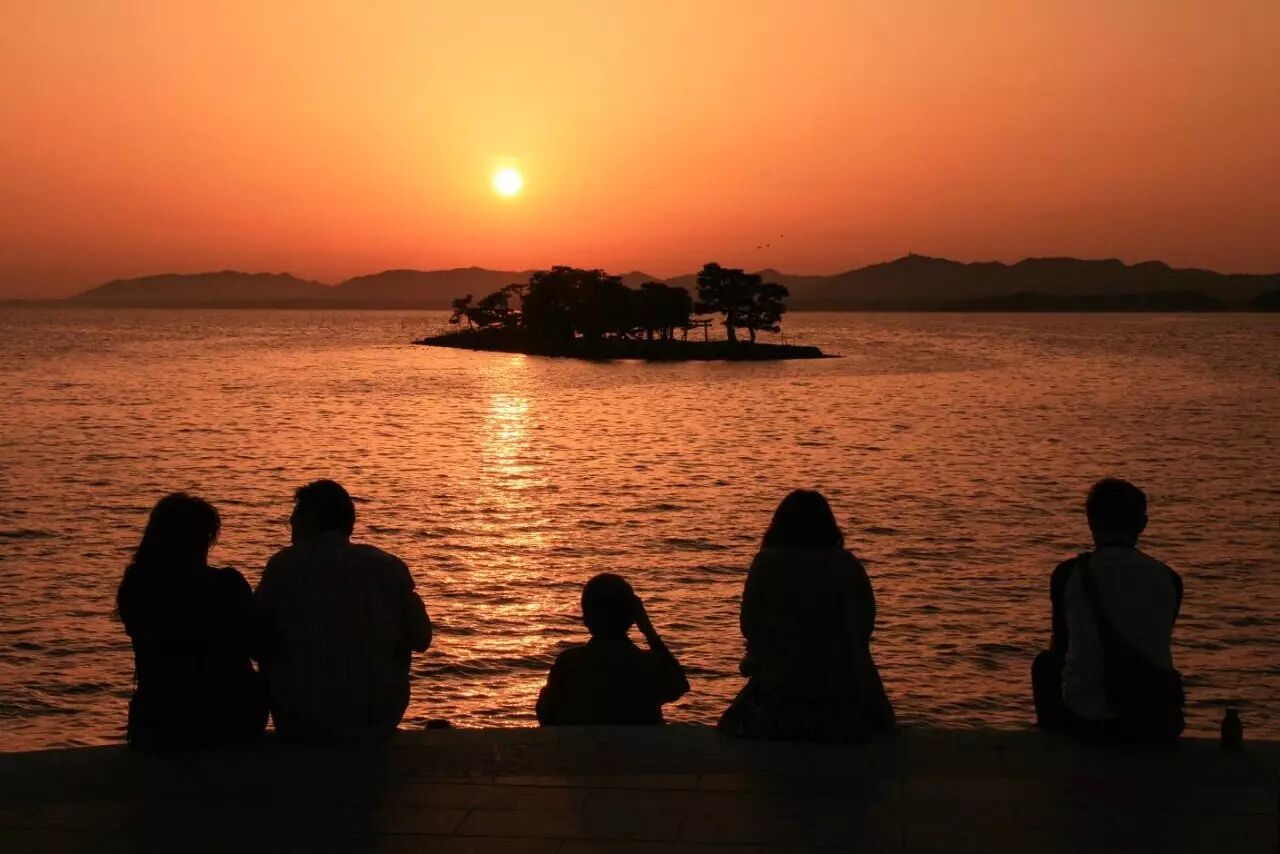 在岛根县松江市的穴道湖,能看到日本最美的夕阳。随着四季的变化,夕阳的景致也会不同。