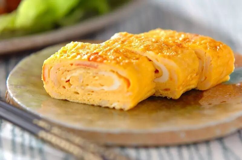 京都的煎蛋卷,会在搅打蛋液时加入较浓的出汁(用鲣鱼花和昆布熬制的高汤),让其口感更嫩,并且不会加入砂糖,与口感偏甜的关东风煎蛋卷不同。