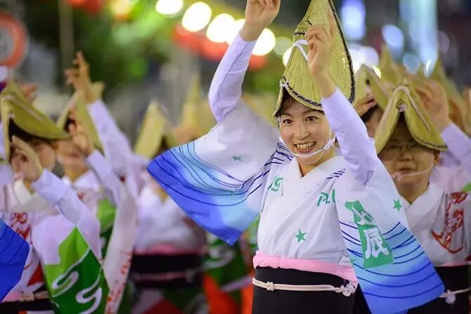 阿波舞为起源于德岛县的一种盆踊(盂兰盆节时跳的舞),为日本三大盆踊之一,有着约400年的历史,属于日本传统艺能。