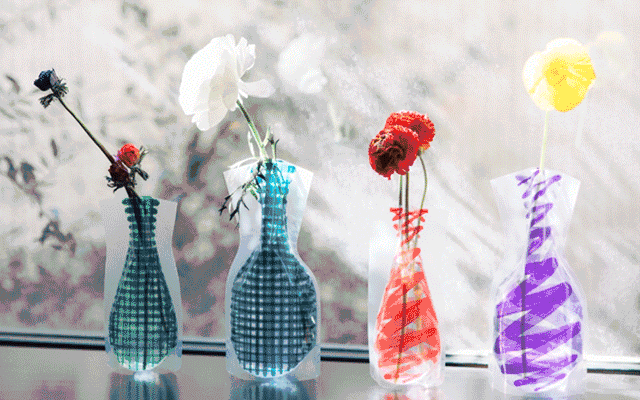 色彩丰富的花器,咦?其实是再简单不过的透明包装纸,却是一份随手可以寄走的好心情。