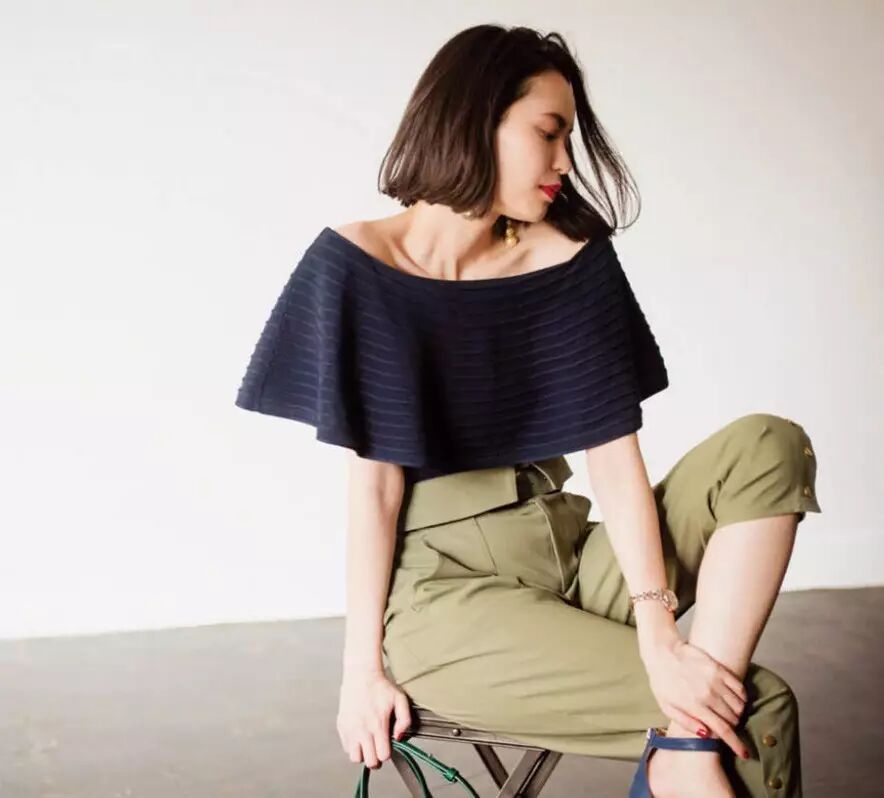 神奇的露肩领不仅能展现性感的锁骨,还能使疲惫的面部状态在映衬下立显丰盈,当季各种改良版的露肩设计非常丰富,带有衬衫领的大V领露肩、荷叶边一字肩等,搭配起来也非常简单、时髦。