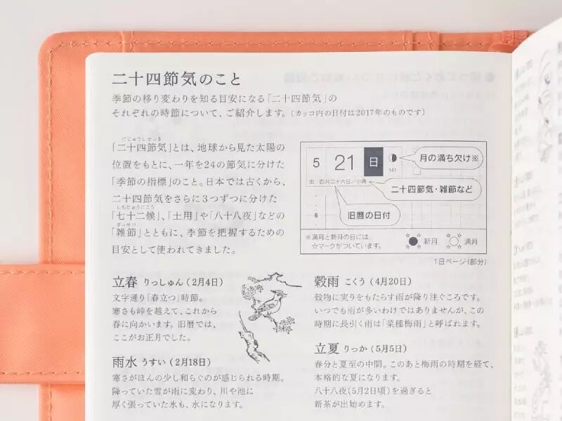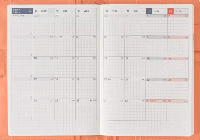 月计划以左右两页为整个月页面,布局就是我们常见的那种,会像日历一样标明节气节日等;