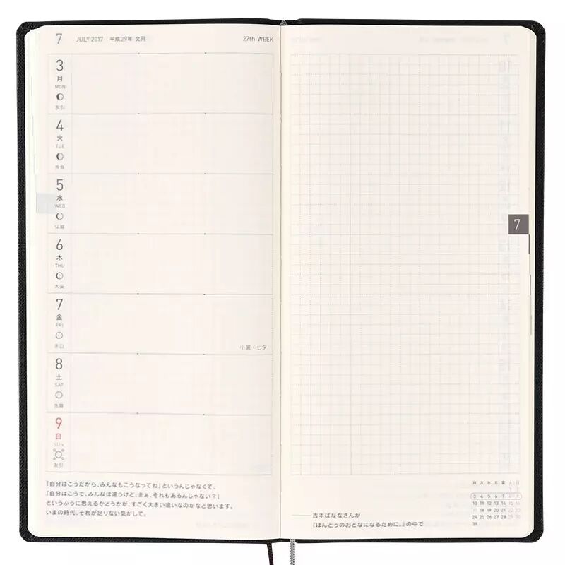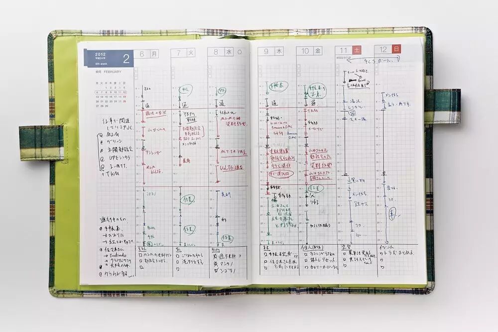 手帐一词来自日语,虽然翻译过来叫笔记本,但通俗来说,在日本笔记本有两种,一种是「手帳」,一种是「ノート(note)」,「note」就是我们平时最常见的一行一行排列的笔记本,但「手帳」不一样,手帐的每页都划分了各种各样的格子和时间轴。