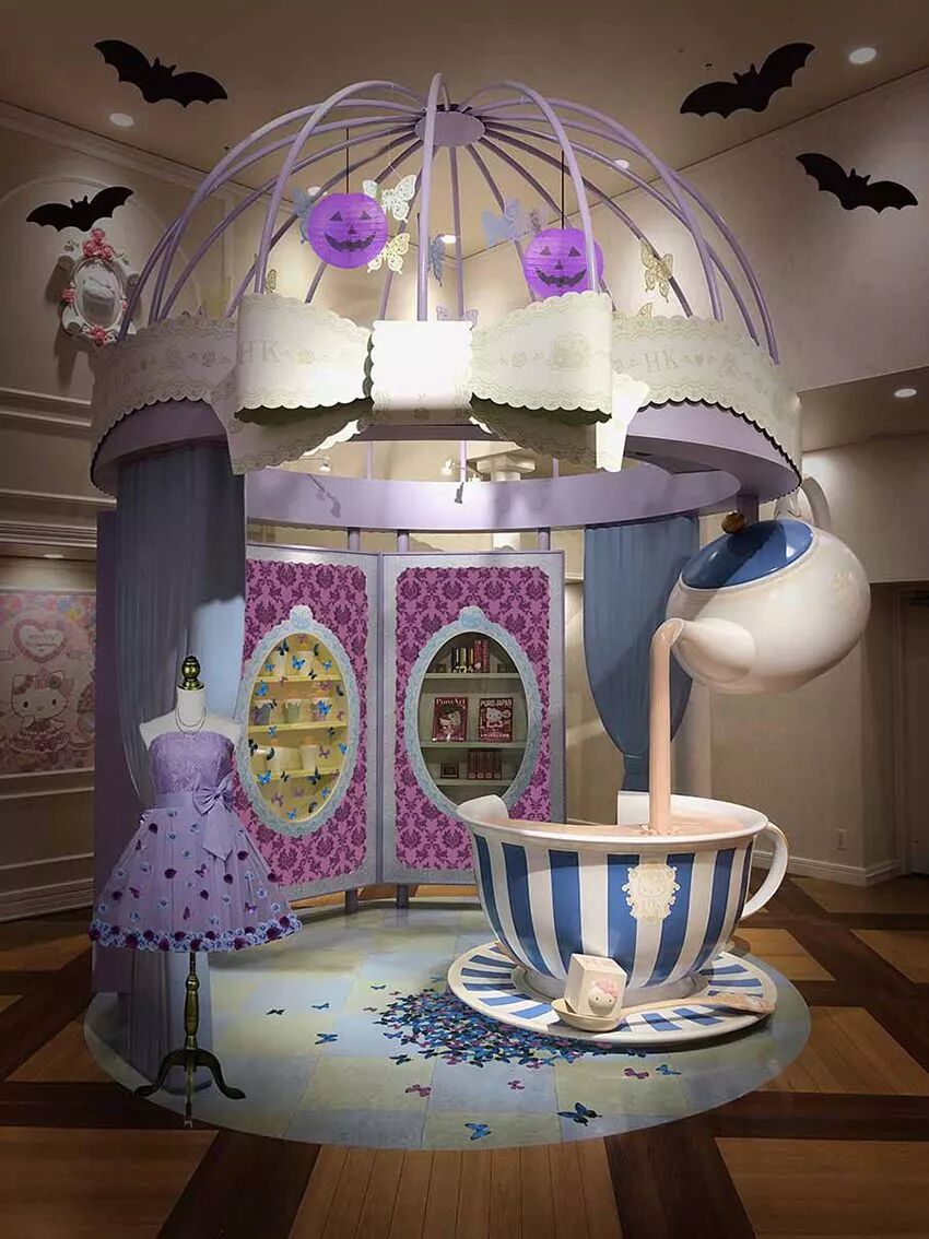 白天部分强调万圣节的梦幻色彩,有茶话会风格的KITTY小屋、拍照点给大家拍拍拍。