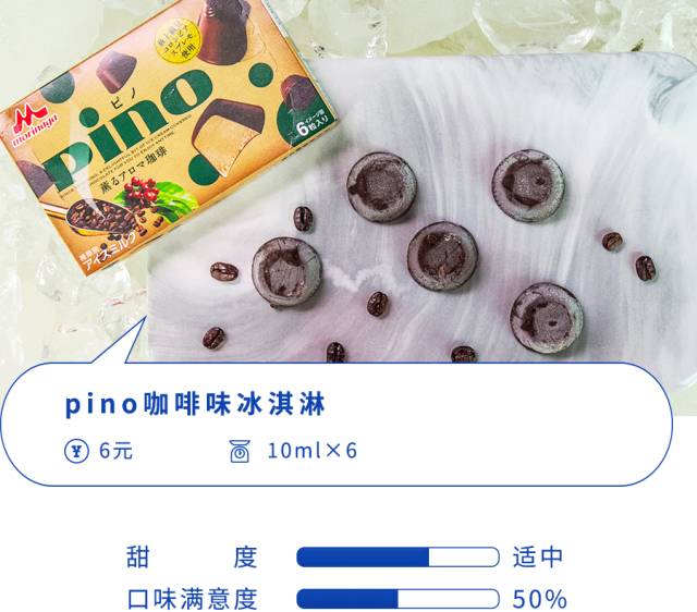pino的咖啡味还原度非常高啊,苦得很到位,就像含了一口冰拿铁在嘴里的感觉,甜度又介于拿铁和摩卡之间,总得来说还算清爽,也不算腻。吃完齿间留有咖啡的香味,回味微苦。平时就喜欢喝咖啡的人务必一试,应该挺合你们口味,不过毕竟是冰淇淋,你要想靠吃这个提神续命,恐怕是要失望的。